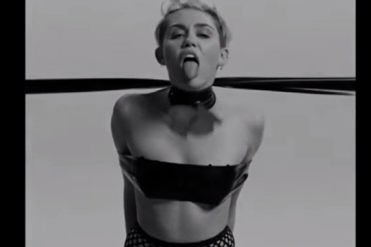 작품의 제목은 '텅 타이드-Tongue Tied'로 영상 속 마일리 사이러스는 라텍스 팬티를 입고 상반신에는 테이프로 최소한의 처리가 된 차림새로 여러 가지 포즈를 선보였다.