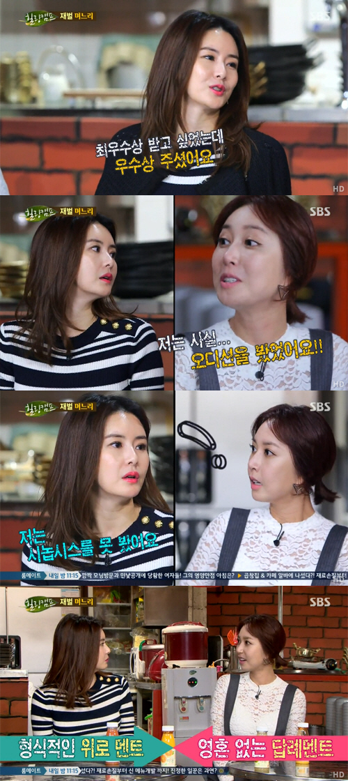 이날 MC들은 최정윤에게 "드라마 '청담동 스캔들'에 출연하면서 연기 경력 20년 만에 2014 SBS 연기대상에서 우수상을 수상했다"며 축하 인사를 건넸다. 이에 최정윤은 "최우수상 받고 싶었는데 우수상을 주셨다"며 너스레를 떨었다.