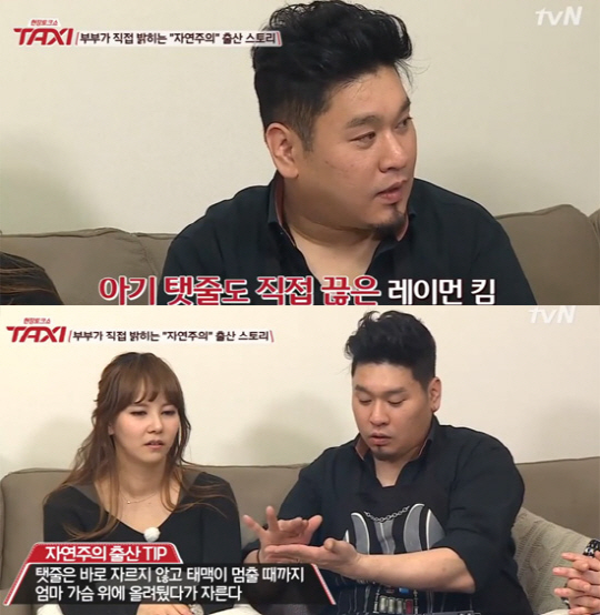 10일 방송된 tvN '현장토크쇼 택시'에는 부모로 새로운 인생의 출발을 시작한 잉꼬 부부 레이먼킴-김지우가 출연해 핑크빛 이야기를 쏟아냈다.