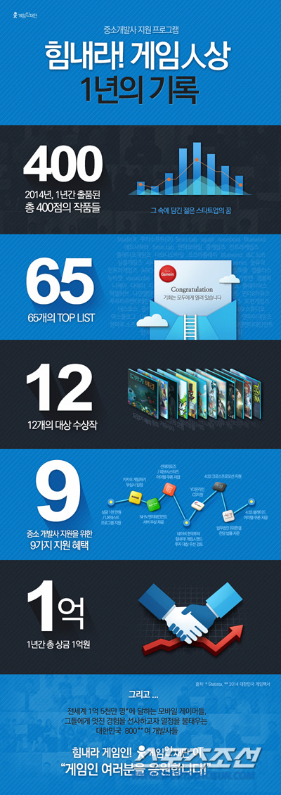 재단법인 게임인재단(이사장 남궁훈)의 중소개발사 지원 프로그램 <힘내라! 게임人상>이 10일 시행 1년을 맞아 그 간의 결실을 정리한 1주년 기념 인포그래픽을 공개했다.
