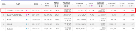 영화진흥위원회 통합전산망에 따르면 '조선명탐정2'는 개봉 첫 날인 지난 11일 11만3434명의 관객을 동원하며 박스오피스 1위의 자리에 올라섰다.
