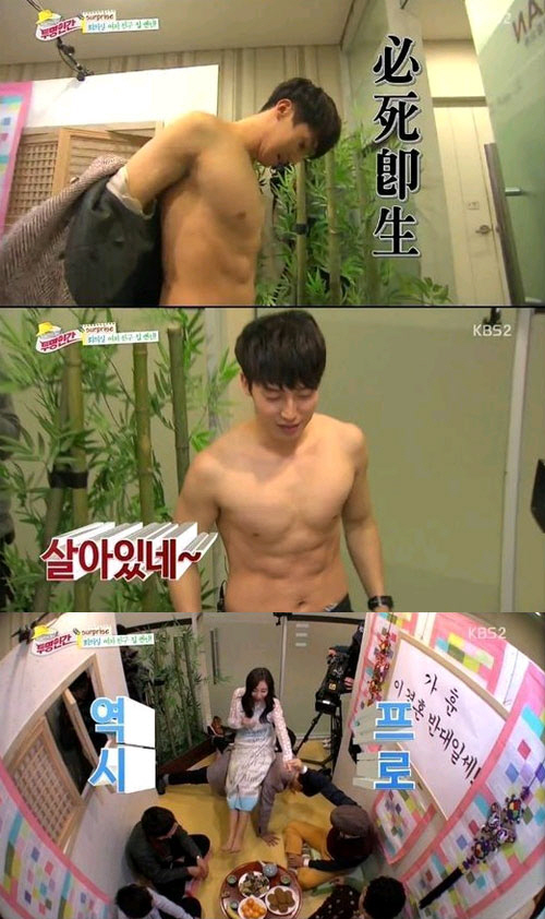 이날 강호동은 상황극을 하던 도중 허경환에게 "아마추어인가 프로인가?"라며 상의 탈의를 요구했다.