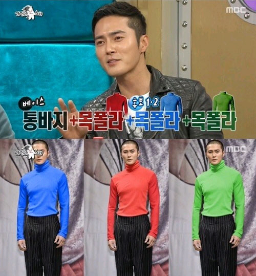 이날 조동혁은 "제작발표회 당시 옷은 본인이 선택한 건가?"라는 질문에 "선택의 여지가 없었다"라며 "바지는 똑같고, 목 폴라 티는 녹색과 파란색이 있었다"라고 답했다.