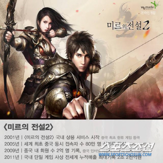 [2011년 2월: <미르의 전설2> 국내 단일게임 사상 전세계 누적매출 최대기록 2조 2천억]