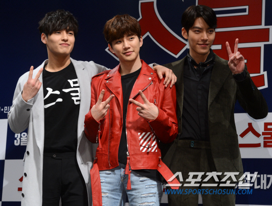 영화 '스물(감독 이병헌)'의 제작보고회가 12일 서울 압구정CGV에서 열렸다. 강하늘, 이준호, 김우빈이 포즈를 취하고 있다. 압구정=허상욱 기자 wook@sportschosun.com/2015.02.12/