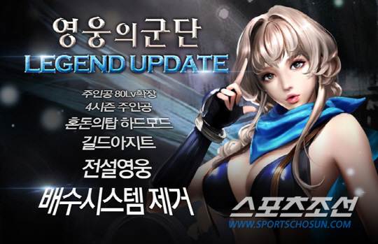 먼저 6성 달성 이후 새롭게 도전할 수 있는 신규 '전설 영웅' 시스템이 추가된다. '전설 영웅'은 '전설의 정수' 아이템으로 획득할 수 있으며, 최대 100레벨까지 성장해 더욱 강력한 힘을 지닌 영웅으로 등장한다. 또 유저들의 의견을 반영해 '배수 시스템'을 과감하게 삭제하고, 영웅들의 능력치를 대폭 상향 조정했다.
