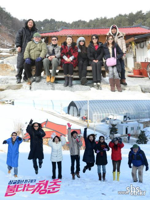 SBS 설 특집 '불타는 청춘'은 오랫동안 혼자 지내 온 중년의 싱글 남녀스타들이 1박 2일 동안 강원도 오지산골에서 지내며 새로운 친구를 만들고 열정과 젊음을 되찾는 버라이어티 프로그램. 개그맨 김국진과 가수 강수지를 비롯해 배우 홍진희, 박찬환, 양금석, 김혜선, 이근희, 록밴드 백두산의 김도균 등 8명의 중년 스타들이 출연한다.