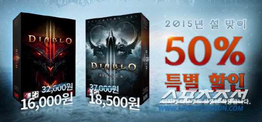 블리자드는 또한 PC 버전 '디아블로3' 오리지널과 확장팩 '디아블로3: 영혼을 거두는 자를 같은 기간 동안 역시 각각 50% 할인된 가격에 판매한다. 2014년 3월 출시된 디아블로3: 영혼을 거두는 자는 한국 팬들의 꾸준한 사랑을 받고 있으며, 시즌 1에 이어 금일 새로운 시즌2가 시작됐다. 이번 설 맞이 특별 할인 혜택은 아직까지 디아블로3를 경험해보지 못한 이들이 친구들과 함께 성전에 동참할 수 있는 좋은 기회가 될 것으로, 해당 기간 동안 Battle.net 샵(https://kr.battle.net/shop/ko/product/game/diablo)을 통해 디아블로3는 32,000원에서 16,000원으로, 디아블로3: 영혼을 거두는 자는 37,000원에서 18,500원으로 할인된 가격으로 구매해 다운로드할 수 있다.