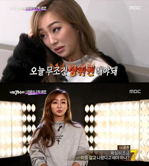 이날 효린은 "나는 오늘 꼴등을 면하겠다는 각오가 아니다. 1등 해야 된다"라며 남다른 포부를 다졌다. 앞서 지난주 1라운드 1차 경연에서 효린은 최하위 성적을 기록했다.