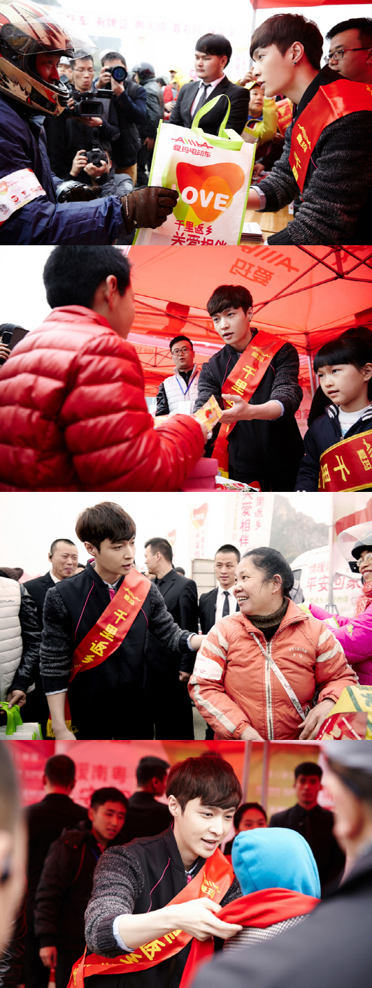 '천리반향 관애상반'은 지난해부터 중국 대표 전동차 및 자전거 회사인 아니마가 춘절기간 동안 오토바이를 타고 이동하는 귀성객을 응원하기 위해 시작한 공익 활동이다. 올해는 운부시와 협력해 고속도로 4곳에 임시 휴게소를 만들고 4일부터 15일까지 공안 및 자원봉사자들의 참여로 진행되고 있다. 레이는 아이마 광고모델인 엑소 멤버를 대표해 이번 활동에 참여했다. 그는 현장에서 목도리 핫팩 비상약 컵라면 생수 장난감 등 고향을 찾는 사람들에게 필요한 물품을 전달, 귀성객과 직접 교감했다. 이에 CCTV 신화사 텐센트 소후 광동위성 심천위성 산동위성 광동일보 등 중국어권 주요 매체 다수 취재진이 취재경쟁을 벌이는 등 뜨거운 반응이 쏟아졌고 한중 문화교류 및 공익활동에 앞장선 공로로 아이마로부터 감사패도 받았다.