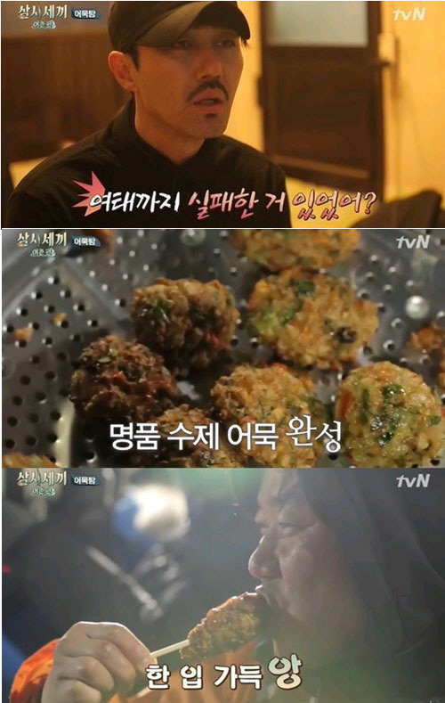 13일 방송된 tvN '삼시세끼-어촌편'에서는 어묵 만들기에 나선 유해진과 차승원, 손호준의 모습의 그려졌다.
