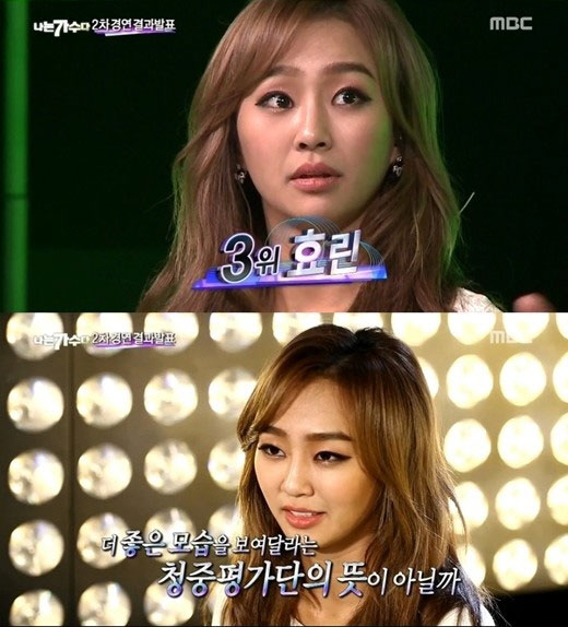 효린은 "(탈락 위기가) 나 자신과의 싸움이었다. 당근 같은 채찍이 아닐까 싶다"라고 소감을 전했다.