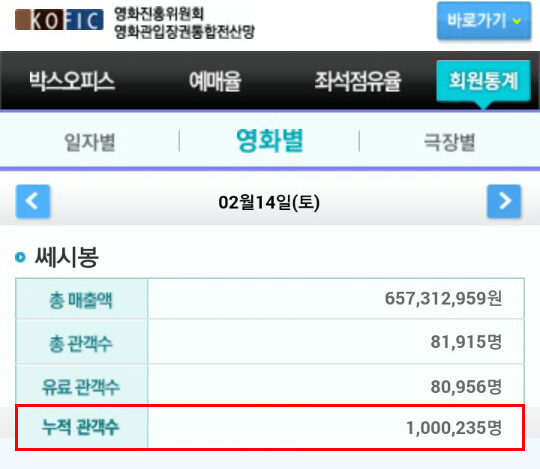 지난 5일 개봉해 전 세대를 아우르는 아날로그 감성으로 극장가에 훈훈한 열기를 지피고 있는 '쎄시봉'이 14일 누적 관객 수 100만 235명(영화진흥위원회 통합전산망 배급사 기준)을 동원했다.
