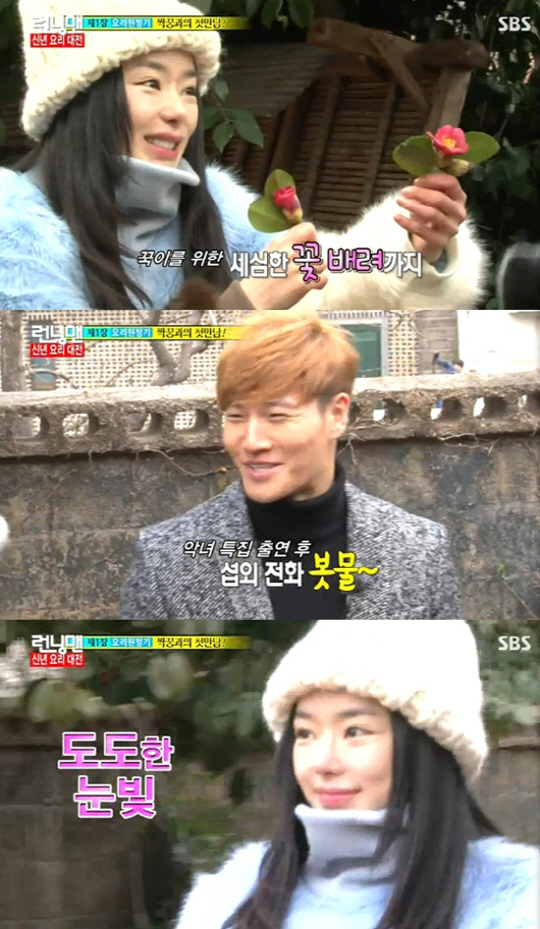 또 서우는 "이왕 온 김에 여기서 모델 워킹을 해 보자"며 깜짝 제안했고 자신이 가지고 있던 동백꽃을 김종국에게 건네주며 웃음을 자아냈다. <스포츠조선닷컴>