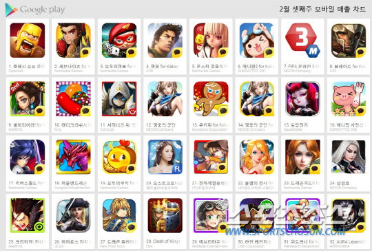 이번주에 눈여겨 봐야할 게임은 라인 레인저스로 이 게임은 지난주까지만 해도 30위권대에서 매출 중위권 진입을 코앞에 두고 있었다. 하지만 지난주부터 이어진 대대적인 TV광고와 마케팅의 효과로 구글 플레이 스토어에서는 30위, 애플 앱스토어에서는 24위에 올라서 기대감을 높였다. 특히 라인 레인저스는 라인 게임의 선봉 주자로 앞으로 기대가 큰 상태다. 관계자들도 이 게임은 물론 라인 게임 플랫폼의 추이에 대해서 큰 관심을 보이고 있다.