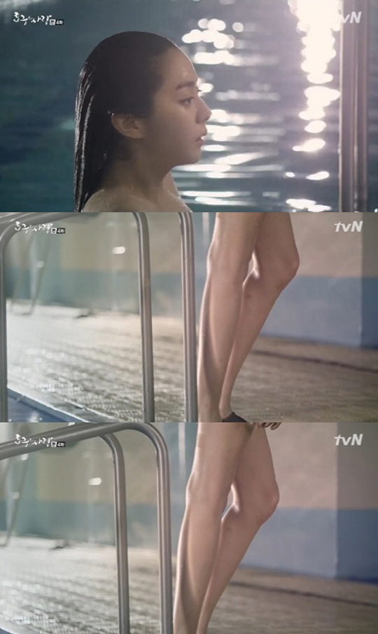 지난 17일 방송된 tvN 월화드라마 '호구의 사랑' 4회에서 유이가 늘씬한 각선미를 뽐냈다.