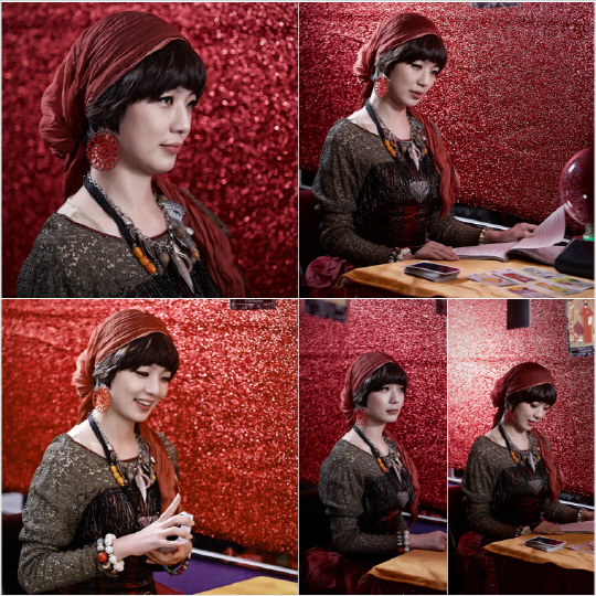 안영미는 붉은색 계열의 머플러를 두건처럼 쓰고 커다란 장신구로 포인트로 준 히피룩으로 특색 있는 점술사 패션을 완성했다. 테이블에 나열된 타로카드와 플라즈마 볼 등의 소품으로 점술사 특유의 몽환적인 분위기를 더했다. 마성의 점성술사로 변신한 안영미는 능청스러운 연기와 번뜩이는 눈빛으로 능수능란하게 카드를 다루며 1시간 30분 만에 신속히 촬영을 끝마쳤다는 후문이다.