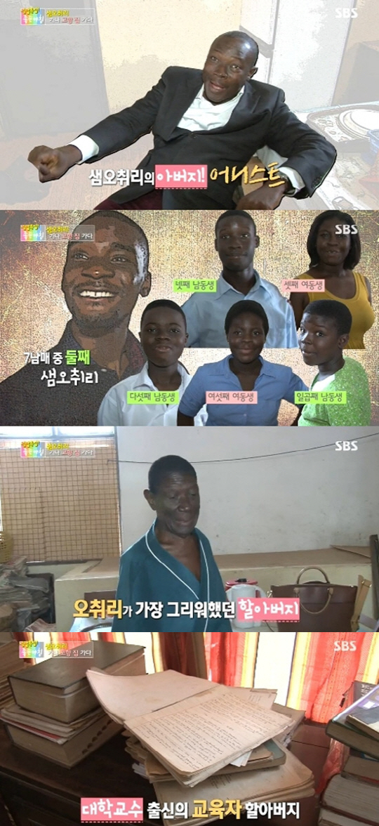 이날 방송에서 샘 오취리는 동생, 아버지, 할아버지까지 3대가 모여 사는 집을 찾았다.