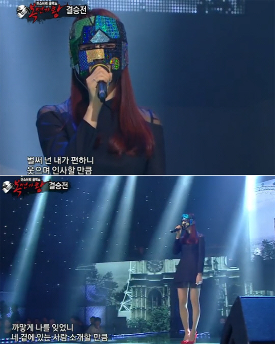 이날 가면을 쓴 채 등장한 솔지는 애절한 보이스로 환상적인 가창력을 뽐내며 관중들을 매료시켰다.