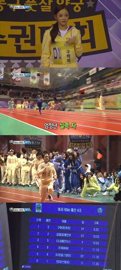 이날 구하라는 레인보우 김재경, 애프터스쿨 나나, AOA 초아, 걸스데이 유라, 미쓰에이 민이 출전한 예선 경기 4조에서 압도적인 실력을 과시했다.