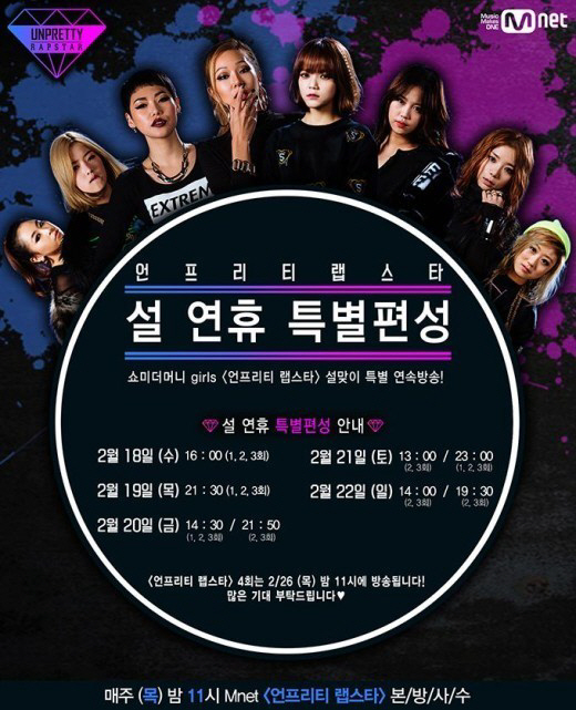 포스터에는 18일부터 22일까지 편성된 '언프리티 랩스타' 시간이 안내돼 있다.