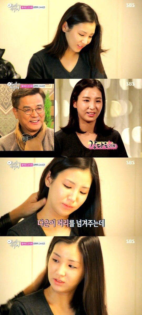또 강석우는 딸의 머리카락이 흘러내리자 손으로 넘겨주며 흐뭇한 미소를 지었다.