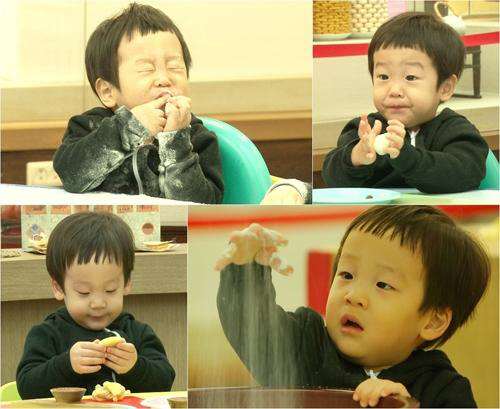 반면 서준은 쌀가루의 보드라운 촉감에 홀릭된 채 한동안 손을 빼지 못하고 만져보다가, 어느 순간 손을 입에 집어넣어 미각 확인에 나섰다. 또한 손이 입 안으로 들어갈 때마다 해맑은 표정을 선보여 웃음을 터뜨렸다. <스포츠조선닷컴>