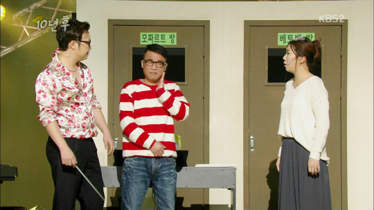 22일 오후 방송된 KBS 2TV '개그 콘서트'(연출 김상미)의 인기 코너 '10년 후'에는 특별 게스트로 가수 김건모가 출연해 '순정깡패' 권재관과 호흡을 맞췄다.