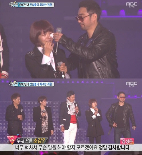그룹 영턱스클럽 멤버 임성은이 19년 만에 무대에 눈물을 흘리는 모습이 포착됐다.