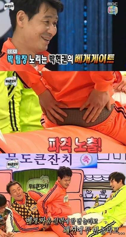 또 멤버들은 속옷이 노출된 것을 모르고 있던 박혁권에게 "저스틴 비버 같아요. 혁스틴 비버에요"라며 웃음을 터뜨렸고, 당황한 박혁권은 "엉덩이 골만 보이지 않았으면 괜찮아요"라고 말해 웃음을 자아냈다. <스포츠조선닷컴>