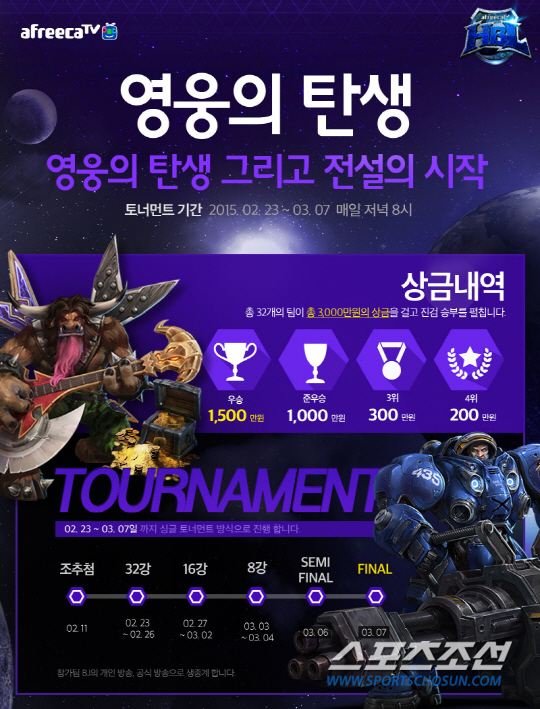 아프리카TV가 개최하는 '히어로즈 빅리그'에서 참가 선수 선발과 조추첨식을 완료하고 23일 오후 8시 첫 경기를 시작으로 본격적인 32강 토너먼트에 돌입한다.