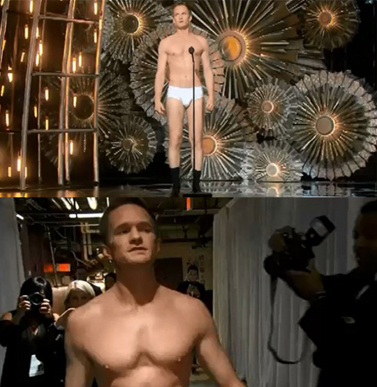 23일 오전 (한국시각) 미국 LA돌비극장에서 진행된 제 87회 아카데미 시상식(이하 오스카)의 MC를 맡은 닐 패트릭 해리스는 2부가 시작될 때 깜짝쇼를 펼쳤다. 하얀색 팬티만을 걸친 채 무대에 등장한 것. 화면 속에서 등장할 때는 '그러려니'했던 톱스타 관객들도 해리스가 실제 무대에서도 그대로 나타나자 "와우!"를 연발하며 놀랐다. 우리나라 영화 시상식에서 이같은 퍼포먼스를 했다면 '방송사고'로 평가받았을 만하다. '시상식의 격이 떨어졌다'고 네티즌들의 맹폭에 시달렸을 것이고 심한 경우 방송이 중단됐을 수도 있다.