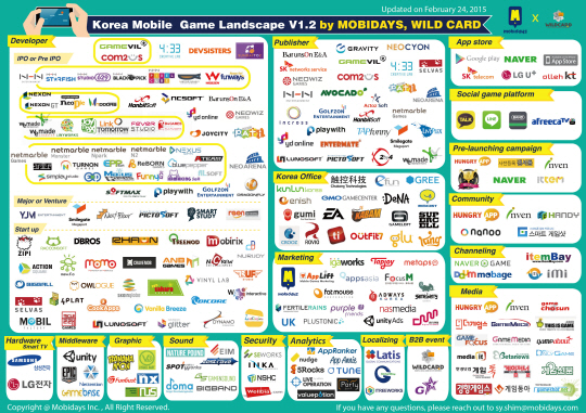 모바일 전문 마케팅 컴퍼니 모비데이즈에서 국내 모바일 게임업계를 정리한 '대한민국 모바일 게임업계 지도'를 출시했다.