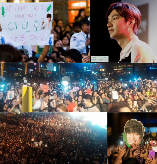 이민호가 24일 필리핀을 방문해 현지 팬을 만났다. 글로벌 모델로 활동하고 있는 치킨 이벤트의 일환. 마닐라의 그린힐스 센터에서 열린 이번 행사에는 1만여 명의 팬들이 운집했고 건물 주변으로 몰려든 인파로 안전을 위해 현지 경찰이 동원됐다. 2009년 '꽃보다 남자'로 시작, 필리핀에서 최고 스타로 자리매김한 이민호의 인기는 상상을 초월한다. 필리핀의 언론이 "최고의 자리에서도 수년간 변함없는 매너"를 인기 요인으로 꼽으며 "이민호로 한국을 배운다" "이민호가 출연한 드라마 대사로 한국어를 배우고 음식, 옷차림 등 문화를 배운다"고 보도할 정도로 이민호의 문화 전도사 역할을 상상 이상이다.