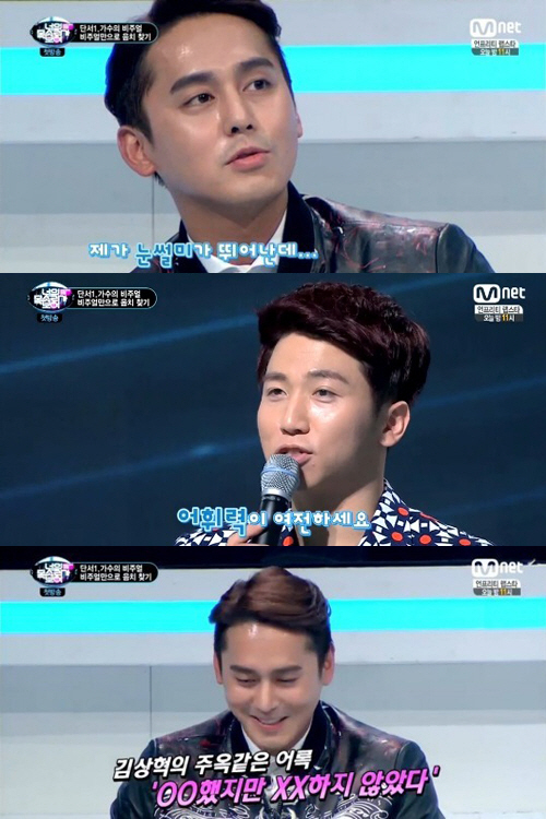 김상혁은 26일 첫 방송된 Mnet '너의 목소리가 보여'에서 안영미, 강용석, 줄리안, 레인보우 재경 등의 음치수사대와 함께 패널로 출연했다.