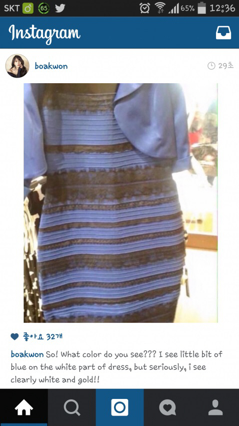 가수 보아도 드레스 색깔 논란에 참여했다. 보아는 자신의 SNS에 드레스 사진을 올려놓고 "무슨 색으로 보이나요? 저는 드레스에 약간 푸른빛이 감도는 것 같긴 하지만 확실하게 흰색과 금색으로 보여요"라는 의견을 올렸다.