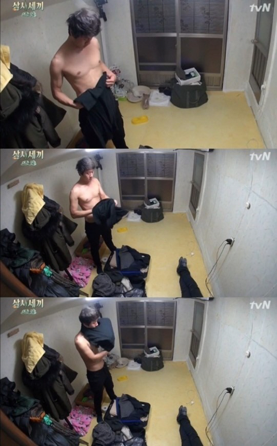 정우는 온 사방에 있는 카메라를 의식한 듯 옷을 갈아입을지 말지 잠깐 머뭇대다 노출(?)을 감행했다.