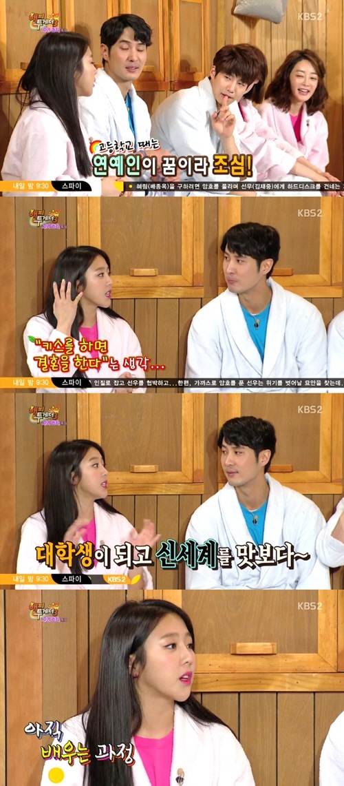 이날 예원은 스킨십과 관련된 질문에 "고등학교 때는 연예인이 되겠다는 생각이 머릿속에 딱 잡혀 있었다. 그래서 뭘 해도 그 후에 뭘 해야겠다는 마음을 먹었다"고 말했다.
