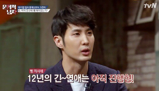이날 첫 번째 문제는 2014년 실제로 출제된 S전자 입사 문제였던 '여자친구와 왜 헤어졌는가?'였다. 김지석은 "외람된 말씀이나 헤어진 적 없고 스물두 살에 만났던 여자친구인 첫사랑과 결혼전제로 지금까지 계속 교제를 해오고 있다"고 당당히 대답했다.