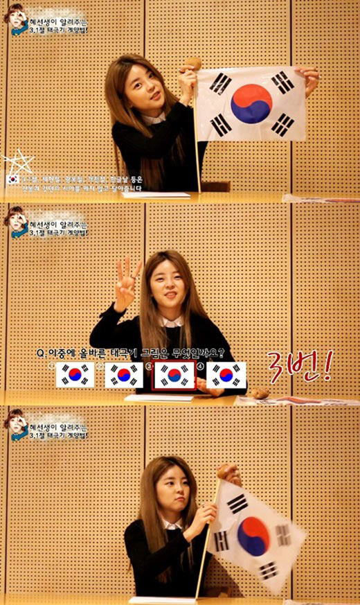 공개된 영상 속에서 혜선생으로 변신한 혜이니가 '태극기 그리는 방법'과 '태극기 게양 방법'에 대해서 설명하고 있는 모습이 감겨있다.