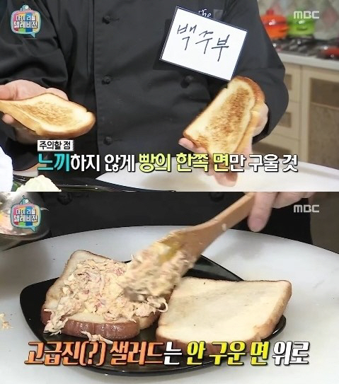 이날 백종원은 3단계 샌드위치를 만들어 시청자들의 눈길을 끌었다. 그는 최고급 샌드위치에는 색감이 중요하다며 치킨무, 양파, 마요네즈가 들어간 2단계 샌드위치 속재료에 당근, 게맛살, 삶은 계란, 머스타드 소스를 추가했다. 이어 버터를 프라이팬에 칠해 준 뒤 빵의 한쪽 면만 구웠다.