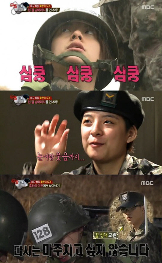 반면 이날 야외 숙영을 위해 텐트를 치기 시작한 이다희와 보미는 유격훈련에서 만난 꿀성대교관에 대한 '뒷담화'로 돈독한 우애를 쌓았다.