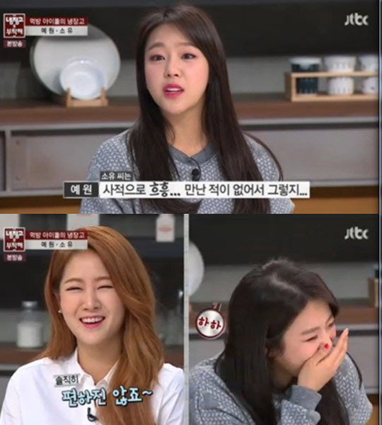 2일 방송된 JTBC '냉장고를 부탁해'에서 예원은 함께 출연한 씨스타 소유가 아닌 보라를 가장 친한 아이돌로 꼽았다.