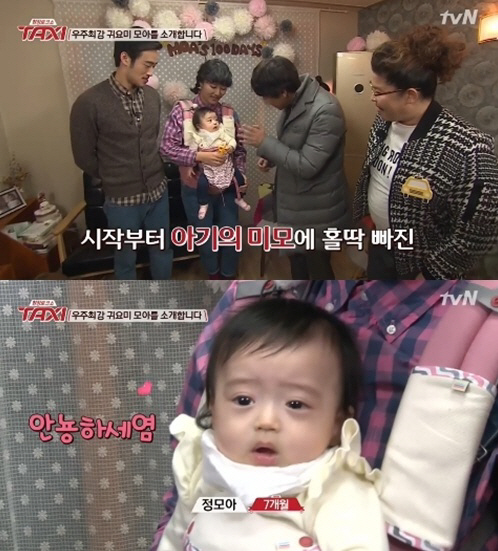 이날 공개된 김미려 정성윤의 딸 정모아 양 아기답지 않게 유달리 큰 눈과 짙은 쌍꺼풀, 뚜렷한 이목구비로 인형 미모를 자랑해 눈길을 끌었다.