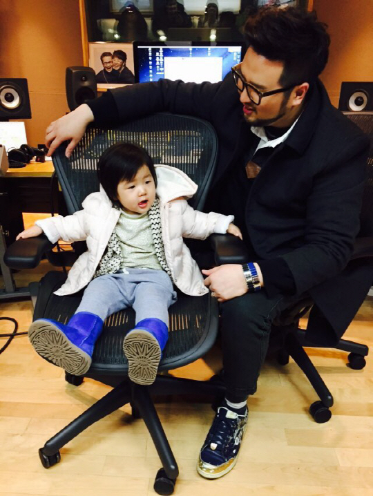 가수 김태우가 딸 지율과 함께 한 녹음실 모습을 공개했다.