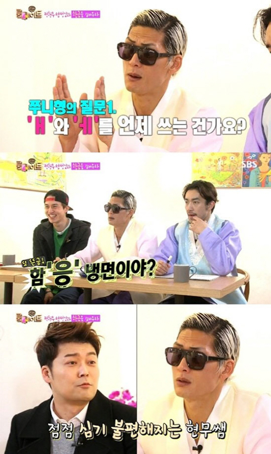 이후 박준형이 이해하지 못하자 전현무는 "보통 유치원생들도 이 정도면 다 이해하는데"라며 답답해했다. 그러나 전현무는 박준형, 료헤이의 눈높이에 맞춰 한글에 대해 설명하려고 최선을 다했다.