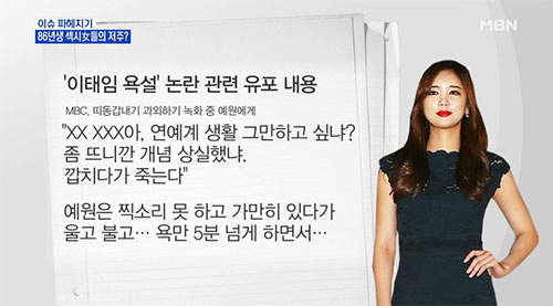 4일 MBN은 이태임이 '띠동갑내기 과외하기' 프로그램 녹화 중 예원에게 했다는 욕설 관련 유포 내용과 대해 전했다.