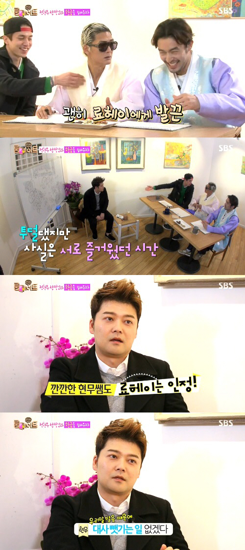 이에 전현무는 "박준형은 한국어 초급, 로헤이는 중급이다"면서 료헤이에게 "우리말 발음 때문에 대사 뺏기는 일은 없겠다"며 료헤이의 한국어 실력에 대해 칭찬했다.