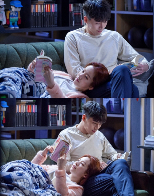 담요를 덮고 현빈의 무릎을 베고 누워 만화책에 집중한 한지민의 모습에서 오랜 연인 같은 편안함이 묻어난다. 동시에 한지민에게 무릎을 빌려준 채 만화책을 읽고 있는 현빈의 포근한 미소에서 행복이 담뿍 묻어나 보는 이들을 설렘을 자극한다.