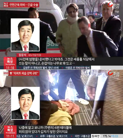 장윤석 국회의원, 리퍼트 대사 피습한 우리마당 김기종 제압'